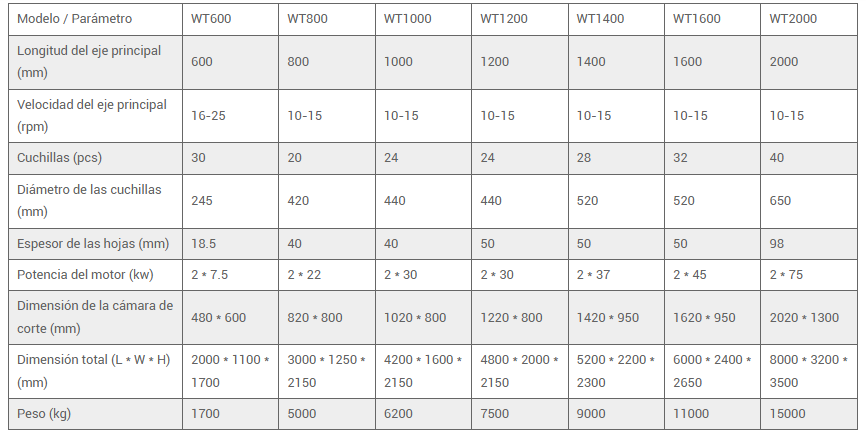 Trituradora de Doble Eje para Reciclaje de Películas Plásticas WPT1000 / 450